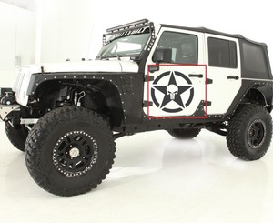 Wheel, Satin black grille, halF-door kit, rectangular led windShield-mounted oFF-road light S, warn® winch, tow hookS, oFF-road bumperS, Wrangler body colour and covers the existing fuel filler Designed to clear 37-inch tyres. Bumper is available with or without grille guard ... Access Content
